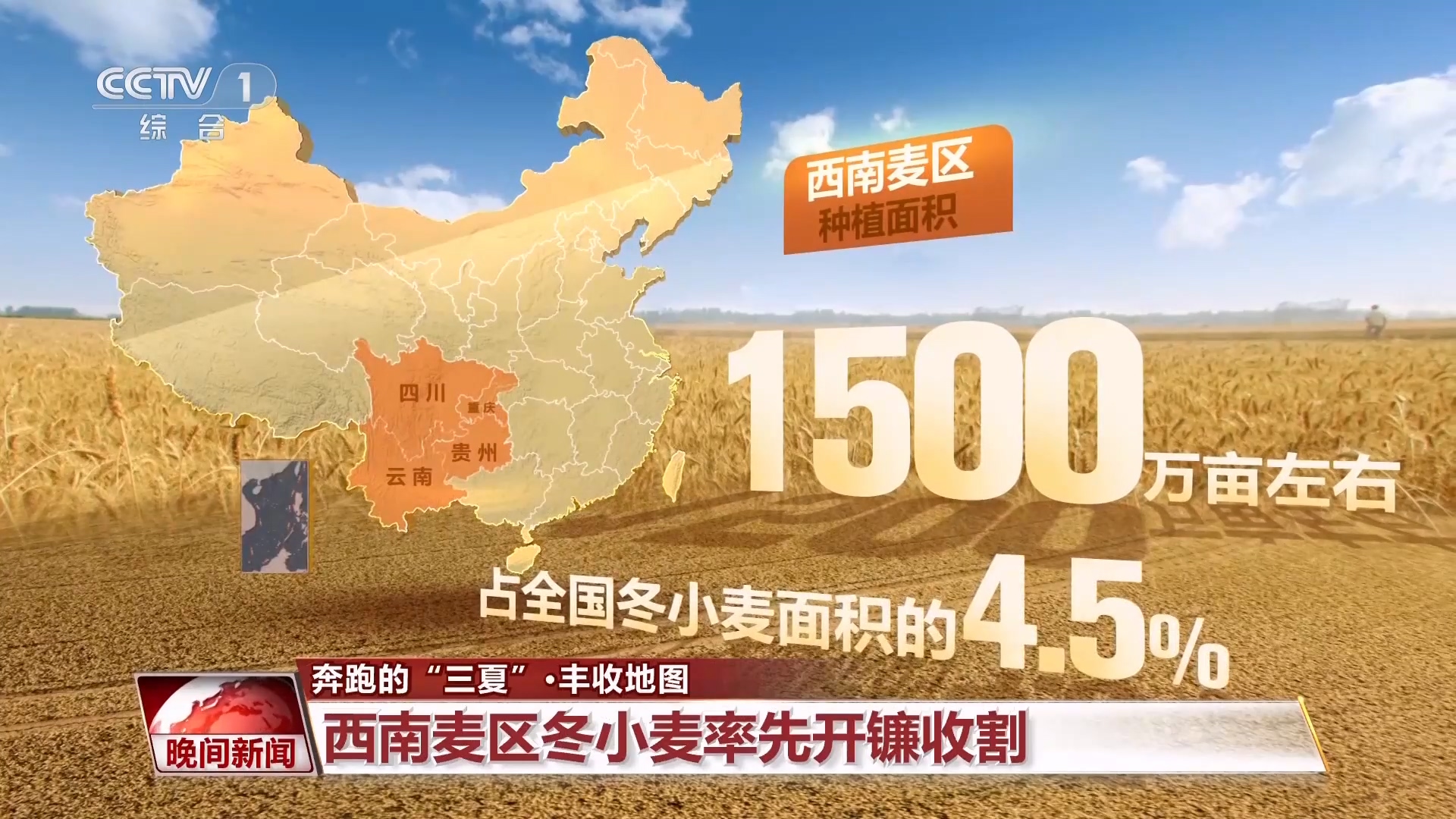眼下,在西南麥區(qū)的云南、貴州、四川、重慶四省市,冬小麥已經(jīng)率先開鐮收割,這一麥區(qū)的種植面積在1500萬畝左右,占全國的4.5%。