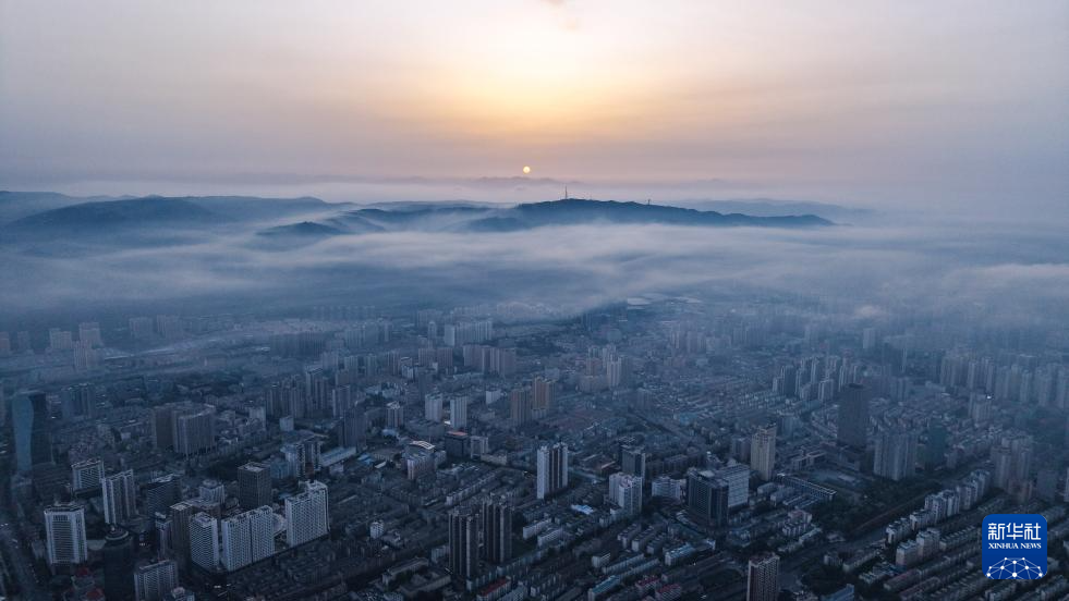 雨后初霽,青海省西寧市云霧縹緲,美不勝收。