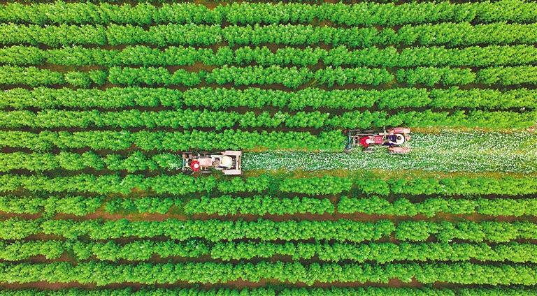5月27日,河南省南陽(yáng)市社旗縣艾草進(jìn)入收獲季,村民抓緊收割,供應(yīng)端午市場(chǎng)?! ?舉攝(中經(jīng)視覺)