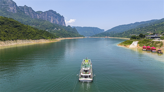 2025年6月12日,正值夏日,位于湖北省恩施土家族苗族自治州恩施市與建始縣交界處的清江畫廊風景區(qū)山如青羅帶,水如藍寶石,奇景滿眼,以險峻的峽谷、清澈的江水和豐富的土家族文化聞名世界,贏來了各地游客前來打卡,盡情領略清江畫廊最美夏日時光以及傳承千百年的美麗傳說。 (巢志斌 攝)