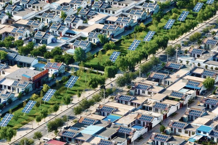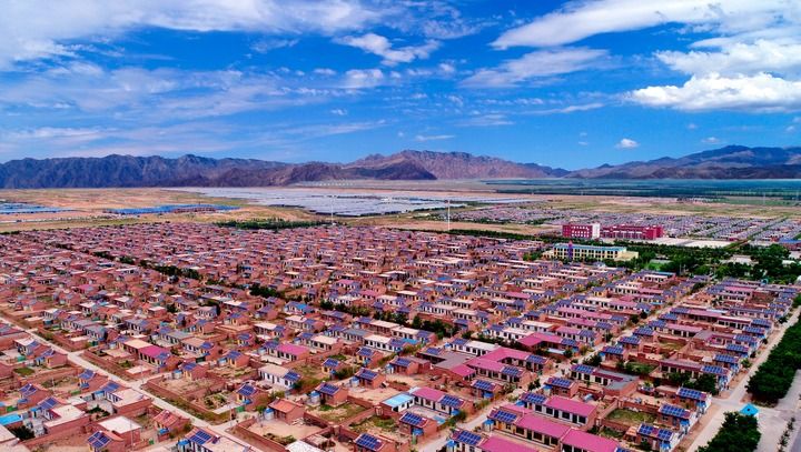 如今的閩寧鎮(zhèn),加速擁抱新質(zhì)生產(chǎn)力,又有了新名片——“綠電小鎮(zhèn)”,一塊塊藍(lán)色光伏板整齊排列在空地、屋頂。(國(guó)網(wǎng)寧夏電力有限公司供圖)