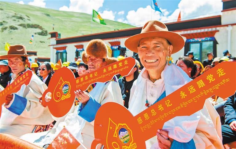 8月15日,西藏定日6.8級(jí)地震災(zāi)后恢復(fù)重建首批民房入住儀式在日喀則市定日縣長(zhǎng)所鄉(xiāng)森嘎村舉行,首批2578戶12139人喜氣洋洋入住新居。