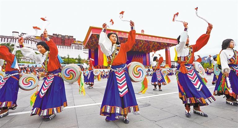 8月21日上午,西藏各族各界干部群眾約2萬(wàn)人歡聚拉薩市布達(dá)拉宮廣場(chǎng),熱烈慶祝西藏自治區(qū)成立60周年。潘 多攝(中經(jīng)視覺(jué))