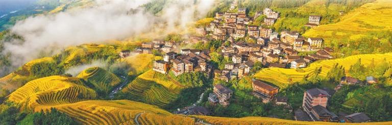 10月14日,在廣西壯族自治區(qū)桂林市龍勝各族自治縣龍脊梯田景區(qū)拍攝的梯田云海景觀。