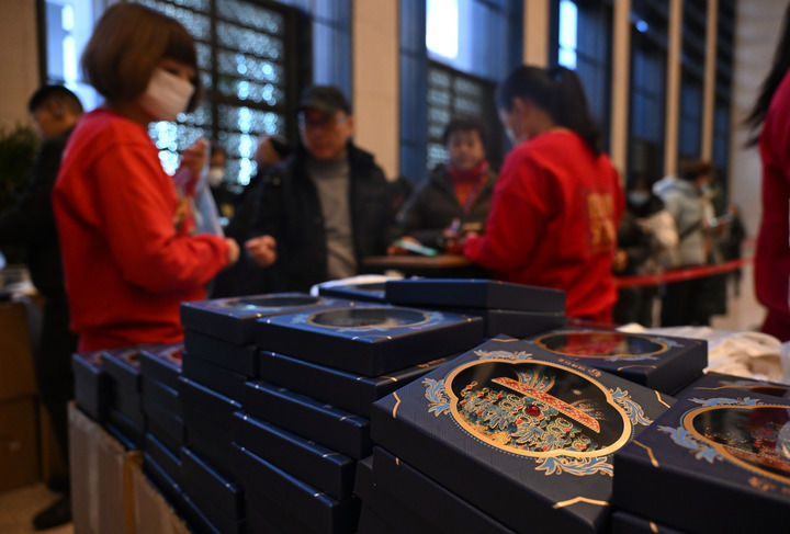 “買到了,真的太好看啦!”國(guó)家博物館內(nèi),捧著兩枚剛買到的“鳳冠冰箱貼”,觀眾小袁難掩興奮之情。