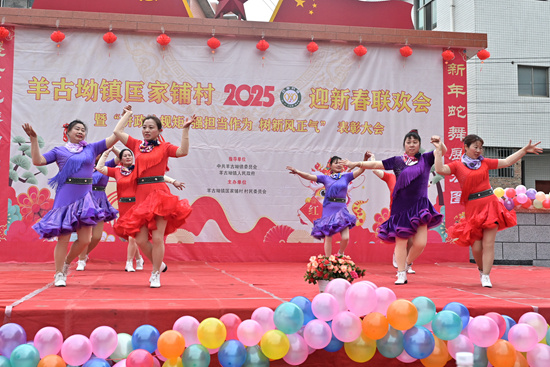 當(dāng)天,該村黨支部書記彭建文與村民擔(dān)任“村晚”主持,演岀在威風(fēng)鑼鼓《精忠報(bào)國(guó)》中拉開帷幕,緊接《2025好運(yùn)來來來》《歡聚一堂》《我的祝福你聽到了嗎》《美女逛超市》《山河美》《三句半》《新年快樂》《家和萬(wàn)事興》等18個(gè)精彩的文藝節(jié)目輪番上演,現(xiàn)場(chǎng)觀眾與演員一起聯(lián)歡唱起來、跳起來,現(xiàn)場(chǎng)氣氛熱鬧非凡。臺(tái)上演員激情演唱,臺(tái)下觀眾盡情歡呼,掌聲和喝彩聲彼此起伏,響徹山村。這些節(jié)目都是當(dāng)?shù)厝罕姾蛯W(xué)生了自編自導(dǎo)自演的,年齡最大的演員已是70多歲的老奶奶。這些節(jié)目豐富多彩,表現(xiàn)形式多樣化,這些“草根演員”在家門口激情用歌聲笑聲,為群眾送去歡樂和幸福,為喜迎蛇年春節(jié)來臨增添了歡樂和喜慶氣氛。
