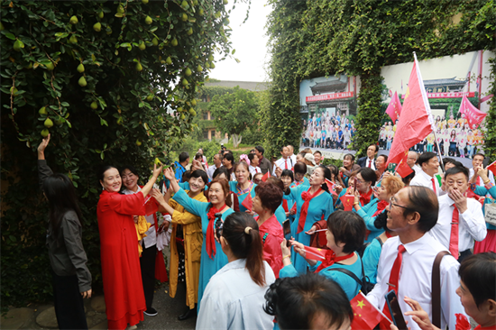 臨湘市社區(qū)星海藝術(shù)合唱團團長胡知秀開心的說:“今天帶大家參觀十三村,親眼目睹工廠蝶變“公園”的巨大變化,這正是新時代生活幸福的最好見證。我們歡聚一堂,提前為祖國慶生,好有意義。感謝黨和政府帶來這么美好的生活!”