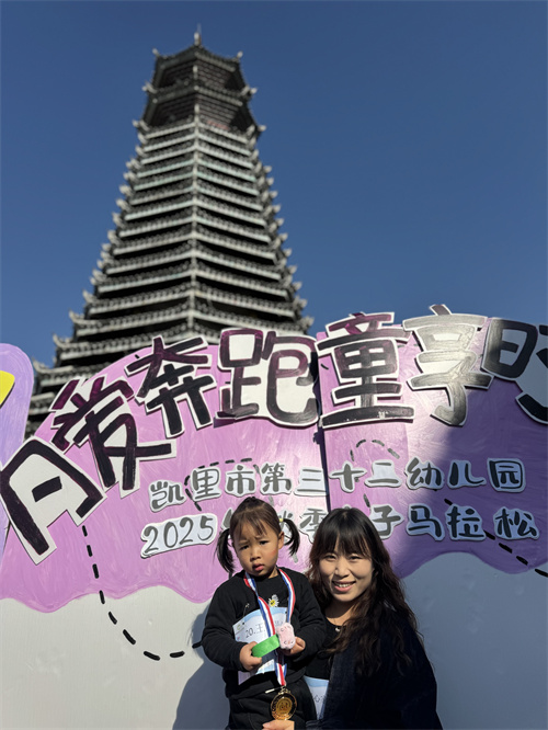 11月21日,“為愛奔跑 ‘童’享時光。”凱里市第三十二幼兒園2025冬季親子馬拉松在國家AAA級旅游景區(qū)凱里苗侗風(fēng)情園活力開跑。此次活動奪得第一、二名各獎勵一塊五花肉。