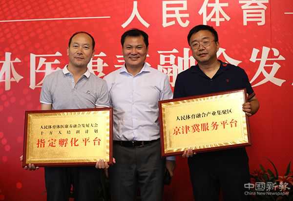 “人民體育融合產(chǎn)業(yè)集聚區(qū)(京津冀)服務(wù)平臺”與“人民體育體醫(yī)康養(yǎng)融合發(fā)展大會十萬人培訓(xùn)計劃指定孵化平臺”的授牌儀式