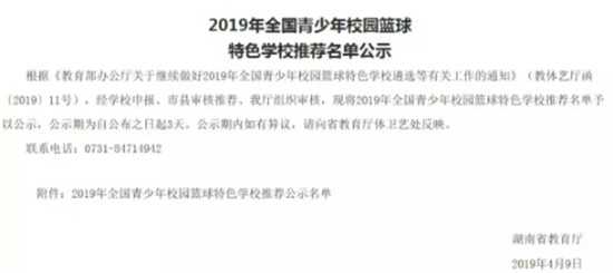 2019年全國青少年校園籃球特色學(xué)校公示 隆回一中入圍