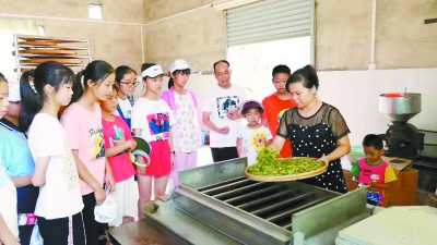 在鄉(xiāng)中學(xué)校外輔導(dǎo)員召集下,當(dāng)?shù)亓羰貎和捅本┖⒆觽兘簧狭伺笥?。接下來的一周,大家一起聽老師講贛南歷史,一起去敬老院做慰問演出,還一起采茶、收花生、去瓜地里拔草、追雞攆鴨……