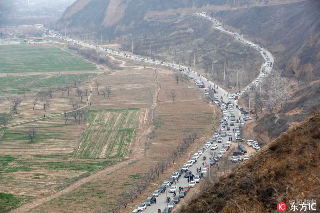 2019年3曰17日,陜西省西安市西咸新區(qū)空港新城太平鎮(zhèn)萬畝杏花盛開,17日適逢周末,數(shù)千人前往賞花踏春,花海附近兩公里的道路上,停滿了車輛。 萬畝杏花遠(yuǎn)看緋云一片,近瞧云霞萬朵,云蒸霞蔚,明艷芳菲。邁入一片杏花海中,漫步于其間,含苞而放的杏花將你置身于紫霧彩霞之中。/東方IC