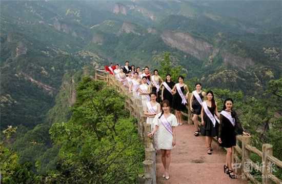 中國新報訊(通訊員 顏克明)4月26日至28日,“2018-2019環(huán)球旅游小姐(中國區(qū))總決賽”的45名參賽選手走進(jìn)世界自然遺產(chǎn)地、國家5A級旅游景區(qū)-邵陽崀山進(jìn)行外景拍攝。青春靚麗、多才多藝的佳麗們的到來,迅速在邵陽新寧當(dāng)?shù)匾疝Z動,更受到崀山游客的由衷喜愛。