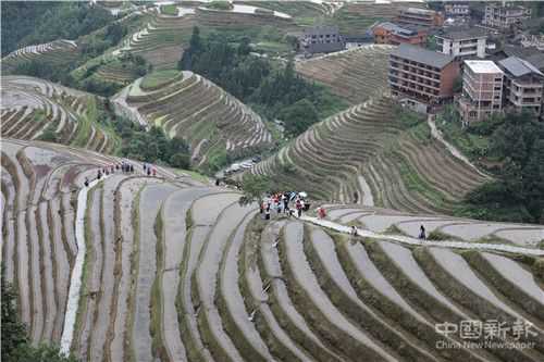 近日,記者一行來(lái)到龍勝縣龍脊梯田景區(qū),看到龍脊梯田旅游景區(qū)內(nèi)群峰逶迤、梯田縱橫,點(diǎn)綴著農(nóng)人勞作的身影,動(dòng)靜結(jié)合,一幅農(nóng)耕文明畫(huà)卷在眼前徐徐展開(kāi)。