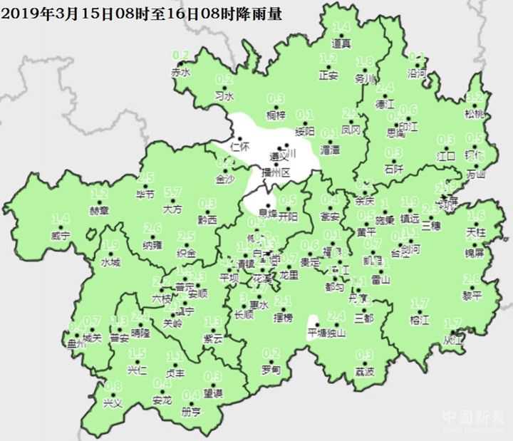 記者從貴州省氣象臺(tái)獲悉,2019年3月15日08時(shí)至16日08時(shí),全省共出現(xiàn)79縣城小雨,2縣城降雪(織金、清鎮(zhèn))。今天(3月16日)夜間到明天白天,全省陰天有小雨,省的西南部有陣雨或雷雨。