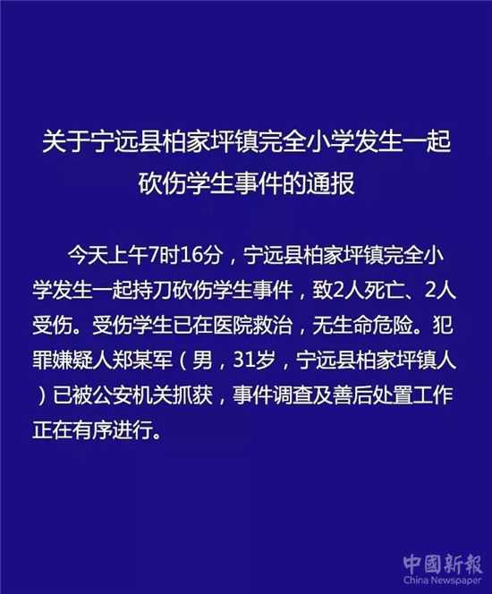 湖南寧遠(yuǎn)一小學(xué)發(fā)生砍人事件致2死2傷 嫌疑人已被警方抓獲
