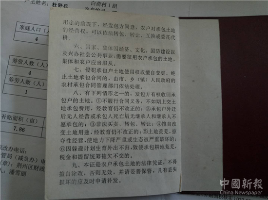 中國新報訊(記者 孫運曉)近日,湖北荊州區(qū)李埠鎮(zhèn)白荷村村民向記者反映,拆遷工作征收村民土地,卻得不到補償,而白荷村2013年村委開會決定,拆遷補償只針對1983年第一輪承包土地村民,那么1996年第二輪承包土地村民,不享受拆遷補償,這是什么原因?以村民王先生為例,蓋有荊州區(qū)李埠鎮(zhèn)財政管理所公章的“湖北省農(nóng)民負擔及補償政策監(jiān)督卡”上面標有農(nóng)民二輪延包或農(nóng)工責任田面積6.4畝,而2018年度“監(jiān)督卡”卻顯示土地確權(quán)面積0畝,而這些承包土地村民都有蓋有政府印證的土地承包經(jīng)營權(quán)證,土地承包經(jīng)營權(quán)為何就這樣消失了?