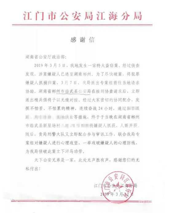 中國新報(bào)訊(記者 朱廷忠 通訊員 禹亞鋼)4月12日,記者從湖南省公安廳得到證實(shí),近日,湖南省公安廳向郴州公安轉(zhuǎn)來一封廣東省江門市公安局江海分局的感謝信。這封信源自于一起黃金案。