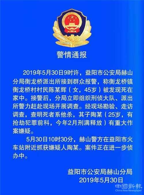 湖南益陽發(fā)生一起弒母案,嫌犯已被抓獲