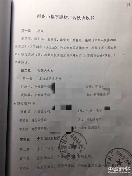 令人意想不到的是,彭政宇不僅拒絕支付承包款,一年之后,還將廠子以租金抵債務(wù)的方式租賃給了別人。目前,福宇建材廠幾經(jīng)更名,現(xiàn)已掛牌湘鄉(xiāng)市仨匠新型建材科技有限公司,法人代表也更換了。讓他想不通的是,明明是幾個(gè)合伙人一起投資入股創(chuàng)辦的磚廠,并有合伙協(xié)議書作為物證,為何磚廠現(xiàn)在卻成為了別人的囊中物?這件事令譚常青十分慪火,并困擾了他數(shù)年,“我只想要回自己的磚廠。”譚常青說。