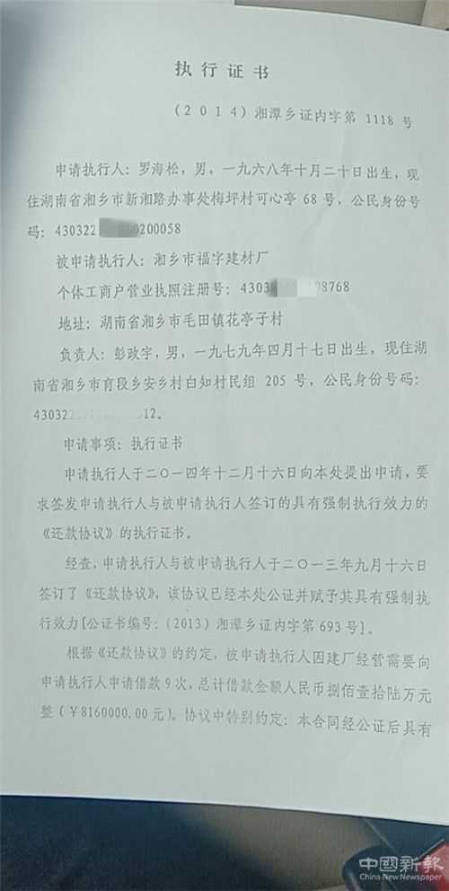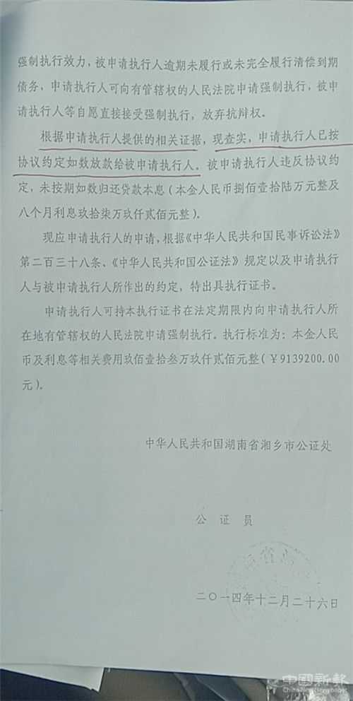 2014年12月26日,羅海松向湘鄉(xiāng)市公證處申請開具了《執(zhí)行證書》。