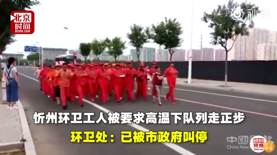 山西忻州:環(huán)衛(wèi)工高溫下走正步被叫停