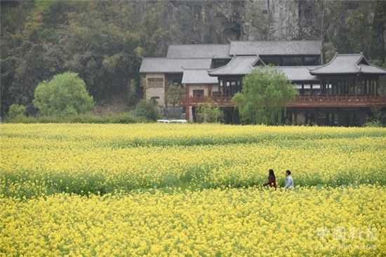 近日,貴州省安順市龍宮風(fēng)景區(qū)油菜花盛開,眾多游客前來踏青旅游。