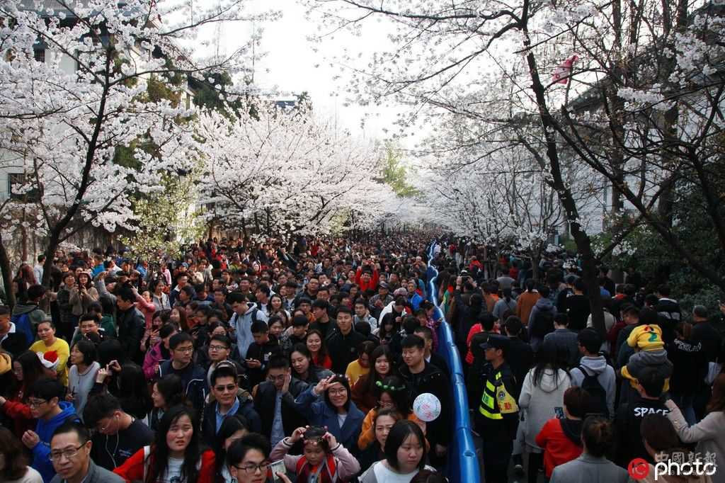 2019年3月23日,春暖花開(kāi),南京迎來(lái)最美櫻花季,南京雞鳴寺、南京林業(yè)大學(xué)等地櫻花絢爛綻放,賞櫻大軍人山人海,游客不禁感嘆花美人也多。楊素平/攝