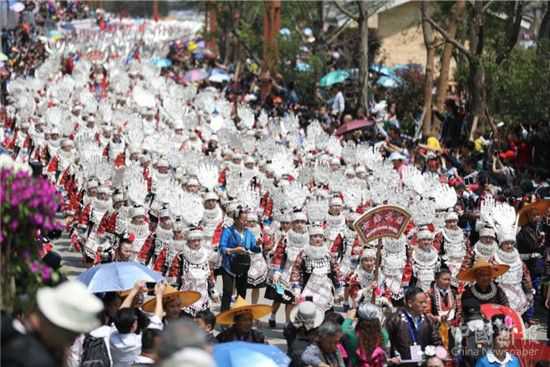 4月18日上午,萬(wàn)名苗族姊妹共慶2019中國(guó)·臺(tái)江苗族姊妹節(jié)。