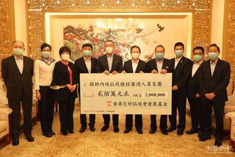 圖:香港友好協(xié)進(jìn)會委讬中聯(lián)辦向內(nèi)地抗疫殉職醫(yī)護(hù)家屬人員捐贈二百萬港元