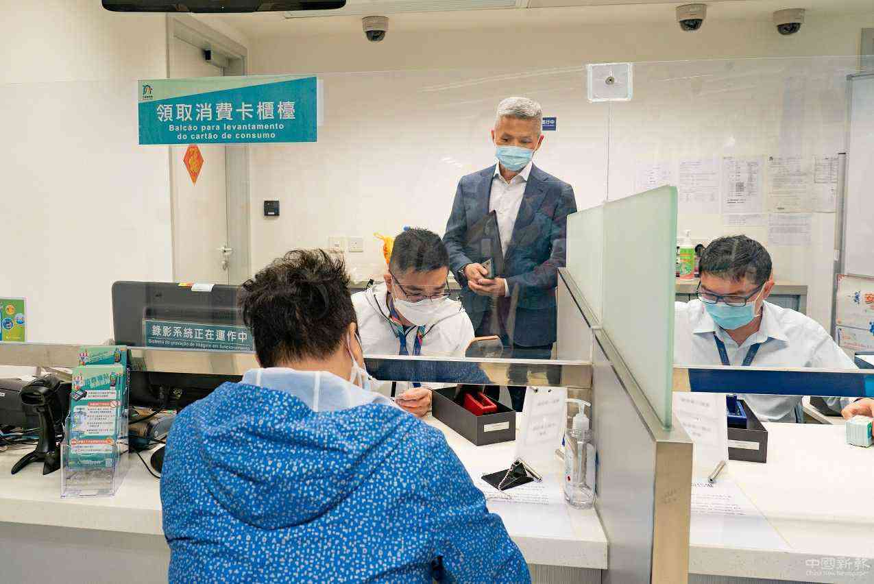 澳門(mén)經(jīng)濟(jì)局人員巡視各領(lǐng)卡服務(wù)點(diǎn)。圖片來(lái)源:澳門(mén)特區(qū)政府網(wǎng)站