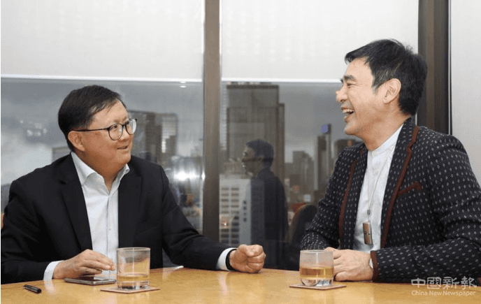 黃英豪(左)和鐘鎮(zhèn)濤在交談(5月6日攝)。新華社記者 吳曉初 攝