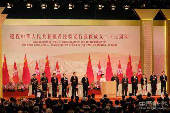 香港特區(qū)成立23周年慶祝酒會(huì)今日(1日)在會(huì)展舉行(點(diǎn)新聞?dòng)浾啕溾x杰攝)