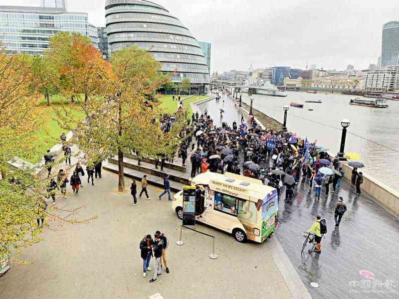 集會(huì)主持人是一名蒙面男子,行為閃縮,對(duì)周遭環(huán)境異常敏感,當(dāng)日集會(huì)的演講者是靠炒作香港政治賺錢(qián)的Benedict Rogers及英國(guó)保守黨人權(quán)委員會(huì)委員裴倫德(Luke De Pulford),他們上臺(tái)發(fā)言時(shí),臺(tái)下的所謂香港“同路人”似乎不諳英語(yǔ),聽(tīng)不入神;直至羅冠聰用粵語(yǔ)發(fā)言,“同路人”才回神喊喊口號(hào)“提神”。一小時(shí)的爛騷做完,約二十名禍港組織成員,手持旗幟走到倫敦橋,大嗌口號(hào)欲吸引當(dāng)?shù)厝笋v足觀看,但路人懶理這班香港逃犯的爛騷。羅冠聰與戴漁夫帽、黑色口罩疑似太子站“死人”的王茂俊結(jié)伴離開(kāi),蒙面主持人與另外三名男士將集會(huì)物資搬到私家車散水。