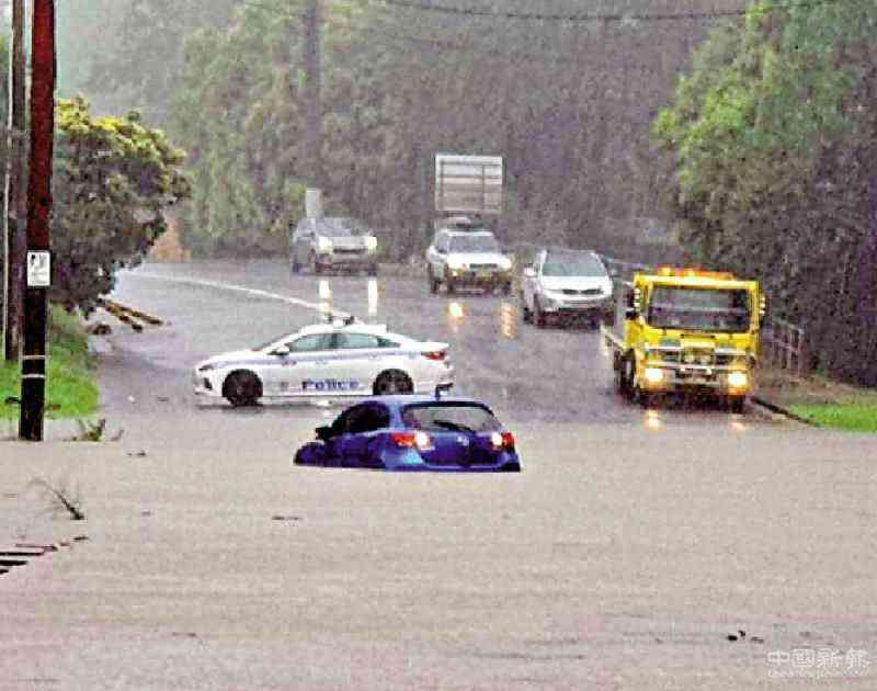 圖:澳洲一輛汽車7日被困在水中\(zhòng)網(wǎng)絡(luò)圖片