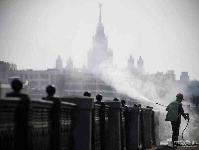 圖:俄羅斯環(huán)保工28日對(duì)莫斯科市消毒\法新社