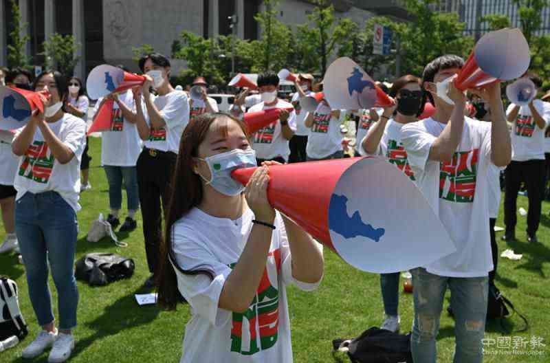 圖:近日朝韓局勢(shì)緊張,圖為韓國(guó)支持統(tǒng)一者13日在首爾舉行和平示威\法新社