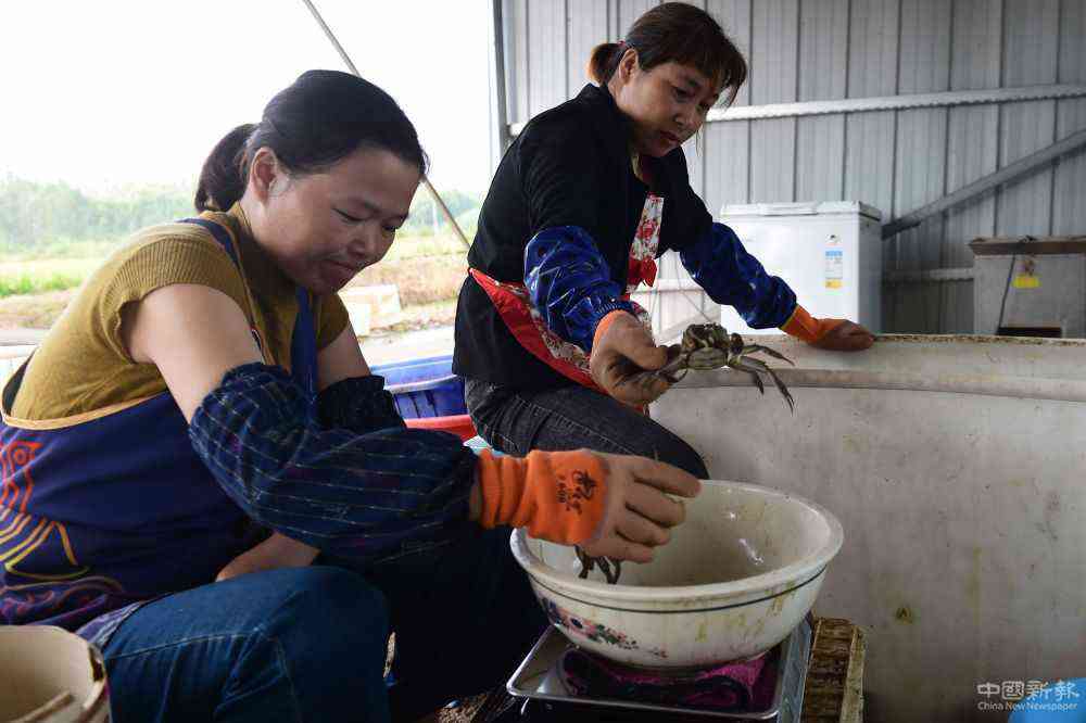 9月23日,在安徽省五河縣沱湖鄉(xiāng)大崗村螃蟹養(yǎng)殖基地,當(dāng)?shù)剞r(nóng)戶在分揀剛剛捕撈的螃蟹。五河縣沱湖鄉(xiāng)近年來依托當(dāng)?shù)剞r(nóng)業(yè)資源優(yōu)勢,發(fā)展小龍蝦、螃蟹等特色養(yǎng)殖,通過土地流轉(zhuǎn)、資金入股、勞務(wù)增收等形式帶動貧困戶脫貧增收。(新華社記者黃博涵攝)