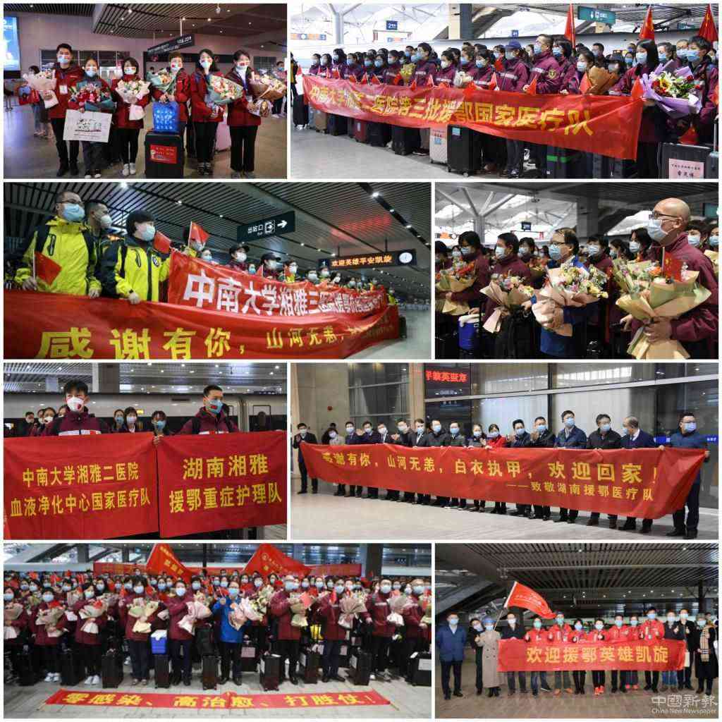 中國新報(bào) (通訊員 唐瀟珺  特約記者 周科際)近日,隨著湖北新冠肺炎疫情形勢好轉(zhuǎn),各地援鄂醫(yī)療隊(duì)在統(tǒng)一安排下陸續(xù)分批撤離。3月30日至4月1日,學(xué)校連續(xù)三天在長沙火車南站迎回四批共計(jì)414名援鄂國家醫(yī)療隊(duì)隊(duì)員。加上此前陸續(xù)凱旋的53名醫(yī)務(wù)人員,至此,中南大學(xué)467名援鄂戰(zhàn)士結(jié)束了長達(dá)60多天的戰(zhàn)斗,圓滿完成國家使命,平安歸來。
