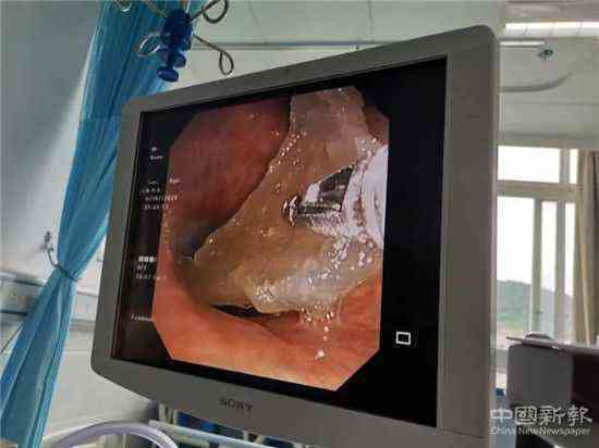 由于家屬自行喂食時(shí)不慎誤吸,病人立即出現(xiàn)呼吸困難,血氧飽和度下降至85%左右,心率升至120次/分左右,呼吸頻率28次/分,神經(jīng)外科立即請呼吸內(nèi)科、重癥醫(yī)學(xué)科專家會診,經(jīng)聯(lián)合會診后評估該患者可能為誤吸導(dǎo)致氣道梗阻可能,有支氣管鏡檢查手術(shù)指針,但該病人合并有擴(kuò)心病、房顫、重癥肺炎等基礎(chǔ)疾病,手術(shù)風(fēng)險(xiǎn)較大,經(jīng)過專家組聯(lián)合討論后,為積極搶救患者生命及保障患者生命安全,決定立即行支氣管鏡檢查術(shù),與患者家屬進(jìn)行充分溝通,告知可能出現(xiàn)的風(fēng)險(xiǎn)、手術(shù)利弊及替代方案,患者家屬積極配合,同意行該項(xiàng)檢查手術(shù),一切預(yù)案準(zhǔn)備就緒后,考慮患者基礎(chǔ)疾病多、病情危重,不宜搬動(dòng),呼吸內(nèi)科將支氣管鏡推至病房床旁,立即行支氣管鏡下異物取出術(shù)。