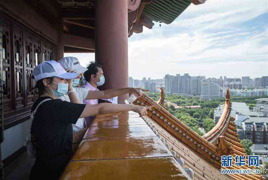8月7日,受邀來(lái)湖北旅游的援鄂醫(yī)療隊(duì)員在黃鶴樓遠(yuǎn)眺。新華社記者 肖藝九 攝
