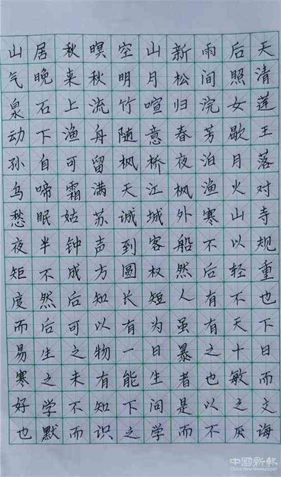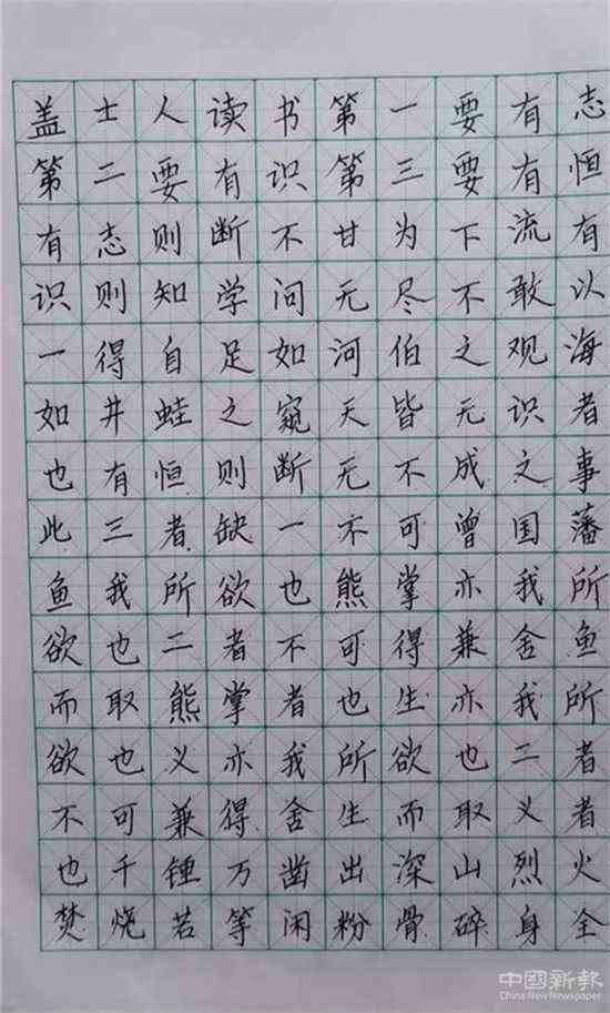 中國(guó)新報(bào)廣東訊(記者 曾洪斌 通訊員 劉小麗)“這是我今天的書寫,你家孩子寫了嗎?”每天下午三點(diǎn)鐘左右,五(七)班班主任梁依勝老師總會(huì)準(zhǔn)時(shí)在微信群里面發(fā)出自己的練字成果,和家長(zhǎng)及同學(xué)一塊共勉,在班主任的親自帶領(lǐng)下,練字在班級(jí)形成一股強(qiáng)烈的熱潮,孩子們你爭(zhēng)我趕,紛紛把自己的成果曬到微信群里面,并互相點(diǎn)評(píng)及家長(zhǎng)老師點(diǎn)評(píng)。“靜以修身,儉以養(yǎng)德”,班主任親自示范,讓孩子們?cè)诟≡甑募倨谀軌蜢o下心來(lái),一筆一劃的把自己的熱情揮灑在書法上,作為三鑫的一名學(xué)生家長(zhǎng),很感欣慰。