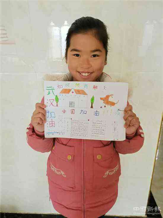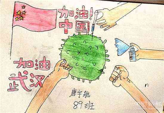 學(xué)生繪制手抄報宣傳防控知識,為武漢加油