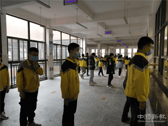 開學(xué)前,學(xué)校對校園所有區(qū)域進行衛(wèi)生清理、消毒,校門設(shè)置臨時留觀區(qū)、物品隔離區(qū),校園內(nèi)設(shè)置課外活動區(qū)、下課休息室等。3月15日上午,思源學(xué)校九年級580名學(xué)生帶上床上用品、生活用品、換洗衣物,錯時分班,在學(xué)校正大門通過嚴格查驗健康碼或社區(qū)證明、測量體溫、更換口罩、洗手消毒、領(lǐng)取“新冠狀疫情期間學(xué)生防控手冊”等進入校園。