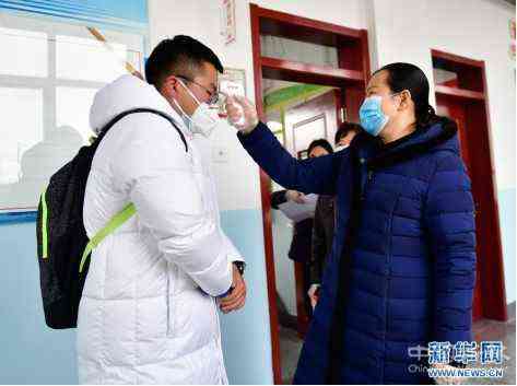 3月9日,在青海省海東市第二中學(xué),學(xué)生進(jìn)入教室前進(jìn)行測溫。