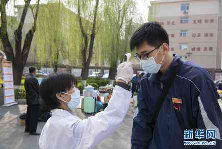 3月25日,在位于太原市財貿(mào)學(xué)校的太原市第五十三中學(xué)校高三教學(xué)點,學(xué)生接受體溫測量。