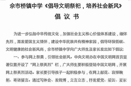 上午8:30,學(xué)校借助班級(jí)微信平臺(tái)向廣大學(xué)生及家長(zhǎng)同時(shí)轉(zhuǎn)發(fā)市、縣文明辦關(guān)于2020年清明節(jié)期間深入開(kāi)展“我們的節(jié)日,文明祭掃,從我做起”的承諾、通知及學(xué)?!冻珜?dǎo)文明祭祀,培養(yǎng)社會(huì)新風(fēng)》倡議書(shū)等內(nèi)容。提倡綠色清明,網(wǎng)上精神祭拜,廣大學(xué)生及家長(zhǎng)積極響應(yīng),大家紛紛動(dòng)手用手機(jī)登陸中華英烈網(wǎng)、湖南文明網(wǎng)、常德民政網(wǎng)查找“網(wǎng)上祭奠”頁(yè)面,瀏覽查看了烈士們的詳細(xì)信息,重溫革命先烈的英雄事跡,從而打動(dòng)感化并教育了我們的學(xué)生。