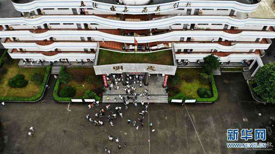 7月9日,考生進(jìn)入歙縣第二中學(xué)考點(無人機(jī)照片)。 受強(qiáng)降雨影響,2020年高考安徽歙縣考區(qū)7月7日未能如期開考,經(jīng)研究并報教育部批準(zhǔn),歙縣考區(qū)于9日啟用2020年普通高等學(xué)校招生全國統(tǒng)一考試語文、數(shù)學(xué)(文、理)科目副題進(jìn)行考試。 新華社記者 黃博涵 攝