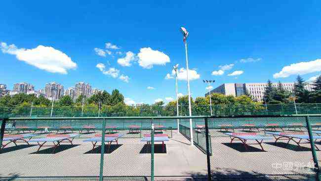 行走在操場旁,能聽見拍打籃球和鍛煉的聲音。