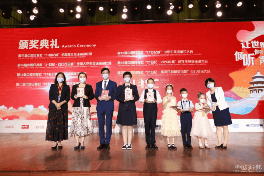 經(jīng)過(guò)激烈角逐,來(lái)自外交學(xué)院的曾愷來(lái)和來(lái)自南京外國(guó)語(yǔ)學(xué)校的王心怡分獲“21世紀(jì)·可口可樂(lè)杯”全國(guó)英語(yǔ)演講比賽大學(xué)組冠軍和“21世紀(jì)杯”全國(guó)英語(yǔ)演講比賽高中組冠軍,來(lái)自北京外國(guó)語(yǔ)大學(xué)的劉梓沛獲得青年組冠軍。來(lái)自沙田學(xué)院的岑沛欣獲得“21世紀(jì)杯”中學(xué)生英語(yǔ)演講大會(huì)初中組的冠軍;來(lái)自三亞市吉陽(yáng)區(qū)南新小學(xué)的張浩睿和來(lái)自貴陽(yáng)市甲秀小學(xué)的熊晟涵分別獲得“21世紀(jì)·VIPKID杯”小學(xué)生英語(yǔ)演講大會(huì)小高組和小低組的冠軍。來(lái)自上海市徐匯區(qū)逸夫小學(xué)的張誠(chéng)原和伊寧市艾樂(lè)幼兒園的孜拉蘭分別獲得“21世紀(jì)·騰訊開(kāi)心鼠英語(yǔ)杯”少兒英語(yǔ)大會(huì)小學(xué)一二年級(jí)組和幼兒組的冠軍。來(lái)自加利福尼亞大學(xué)伯克利分校的美國(guó)選手Wen Liu獲得“一帶一路”青少年英語(yǔ)演講比賽總冠軍;來(lái)自浙江大學(xué)的中國(guó)選手吳博晉獲得亞軍。